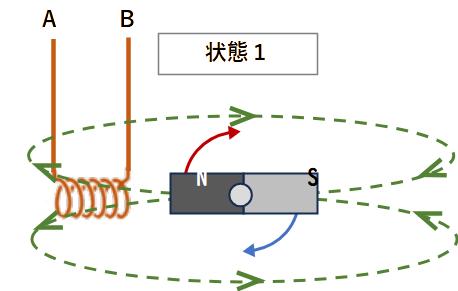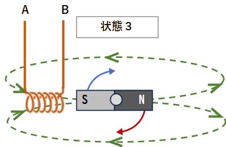 図表A.10.3 方位磁針と棒磁石で磁界の向きを知ろう