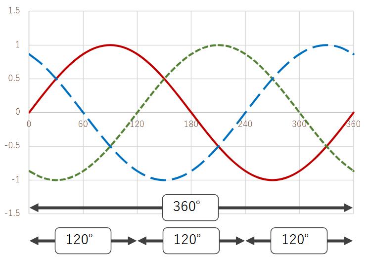 図表A.9.11 正弦波交流の数式に対応したグラフ